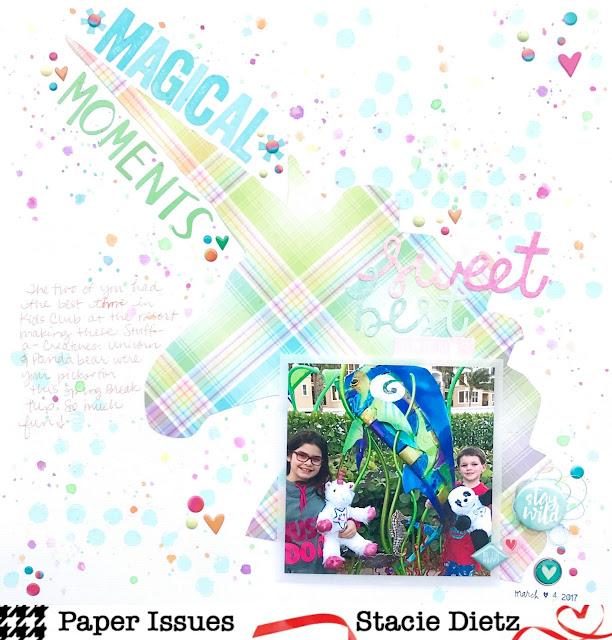 The enamel dots partnered with groupings of Fancy Pants Designs puffy stickers completed the rainbow sprinkles.